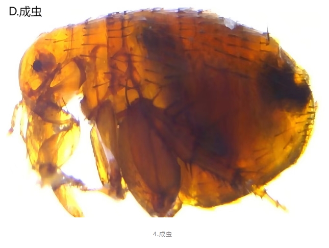 印鼠客蚤屬于完全變態(tài)昆蟲,成蟲兩側(cè)扁平,棕黃色至深褐色,體長一般為3毫米左右。其生活史包括卵、幼蟲、蛹和成蟲四個階段。卵為橢圓形、暗黃色,表面光滑,在適宜的溫濕環(huán)境下可在2-7天內(nèi)孵化。幼蟲呈蛆形,白色或淡黃色,以環(huán)境中各種有機碎屑為食。幼蟲經(jīng)歷三齡、蛻皮兩次后成熟,隨后吐絲結(jié)繭化蛹。蛹具有成蟲雛形,并逐漸變?yōu)榈厣?-2周后羽化為成蟲。
