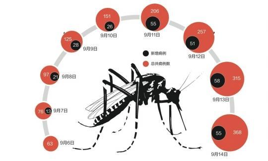 今年4月11日,廣州市報(bào)告廣東省今年首例本地感染登革熱病例,比去年至少提前了一個(gè)多月。8月22日,潮州也出現(xiàn)了當(dāng)?shù)厥桌?a href='http://m.ccmfyzw.cn/Product/964235440.html' target='_blank'>登革熱本地病例,此后,從每天10多例的增長到20多例,再到50多例的增速,截至9月14日16時(shí),潮州市共報(bào)告登革熱本地病例368例。目前,住院病人134例,其中重癥1例。