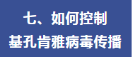 減少基孔肯雅病毒傳播的主要方法是控制蚊蟲媒介和減少蚊蟲孳生地。最少5天清洗一次盛水容器、處理廢物。在疫情期間噴灑殺蟲劑殺滅成蚊,對蚊子停留的容器內部和周圍的表面進行藥物處理,處理容器中的水以殺死未成熟的幼蟲。