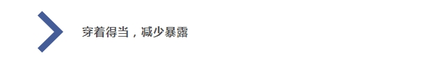2.扎好領口、袖口和褲腳,戴帽子,穿全包腳的鞋,盡量避免皮膚裸露。